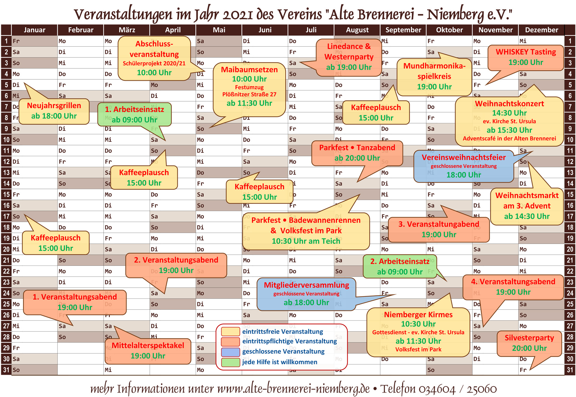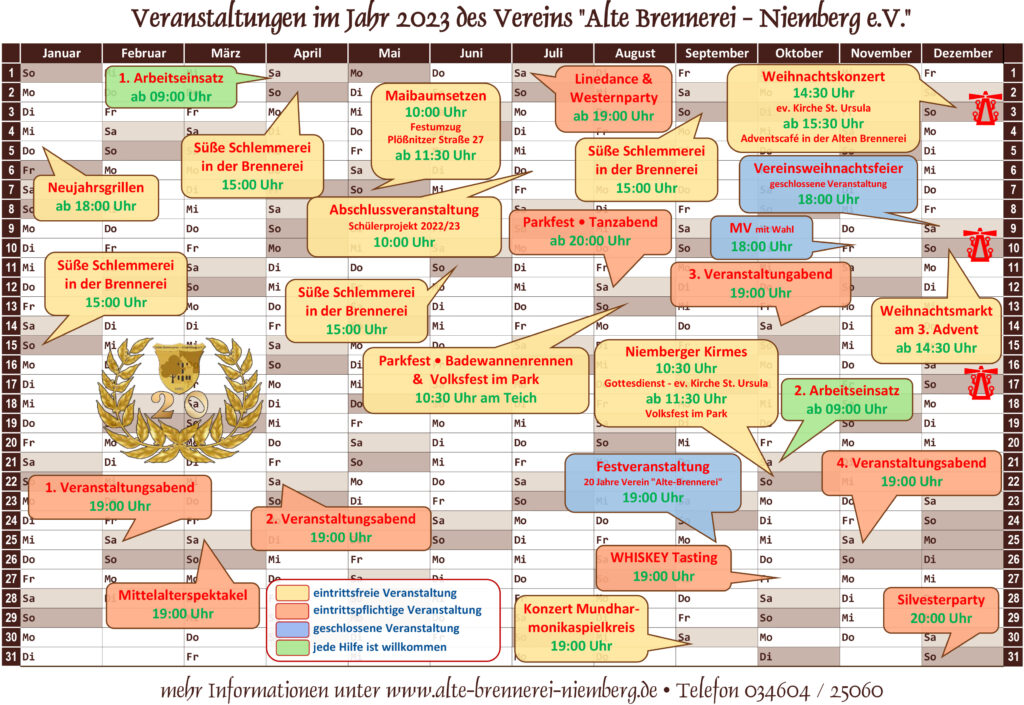 Veranstaltungen im Jahr 2023 des Vereins „Alte Brennerei – Niemberg e.V.“